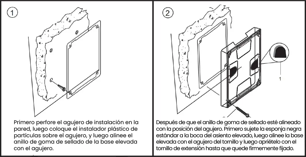 - Fije la base de montaje a la pared a 1,5 metros de altura.