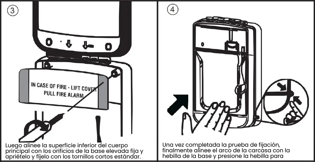 - Diseño transparente:- Su estructura completamente transparente permite una fácil visualización de la estación manual, asegurando que las indicaciones y señales sean claramente visibles para los usuarios.