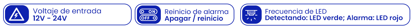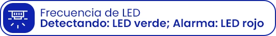 | Frecuencia de LED | Detectando: LED verde; Alarma: LED rojo |